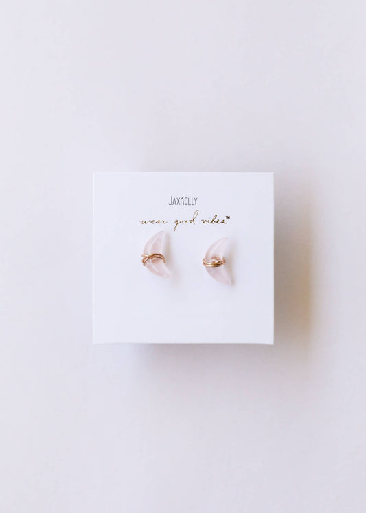 Wire Wrapped Moon Rose Quartz Earring