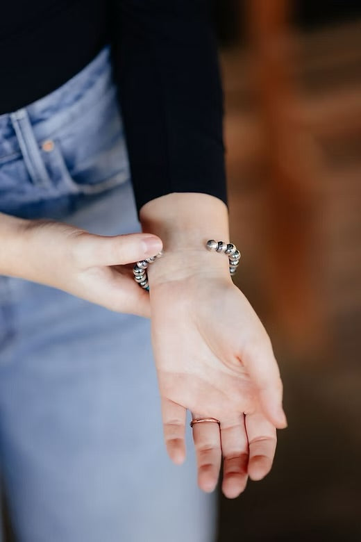 Brown LV Chunky Bracelet w/ Freshwater Pearl