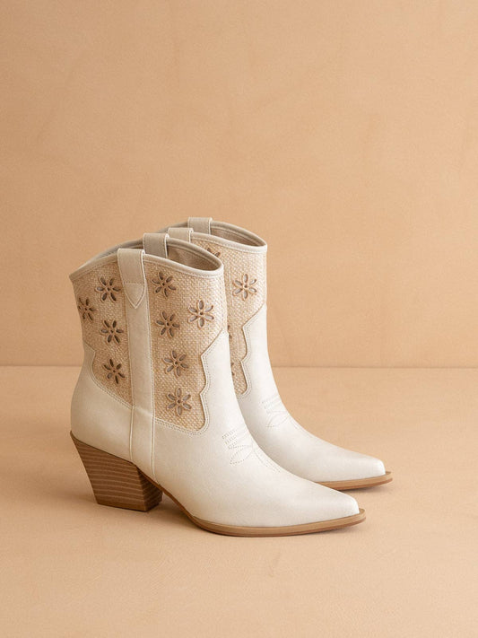 The Della | White Mesh Floral Cutout Detail Cowboy Boots