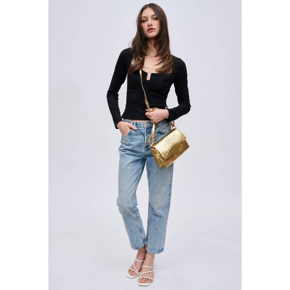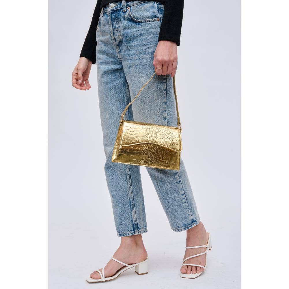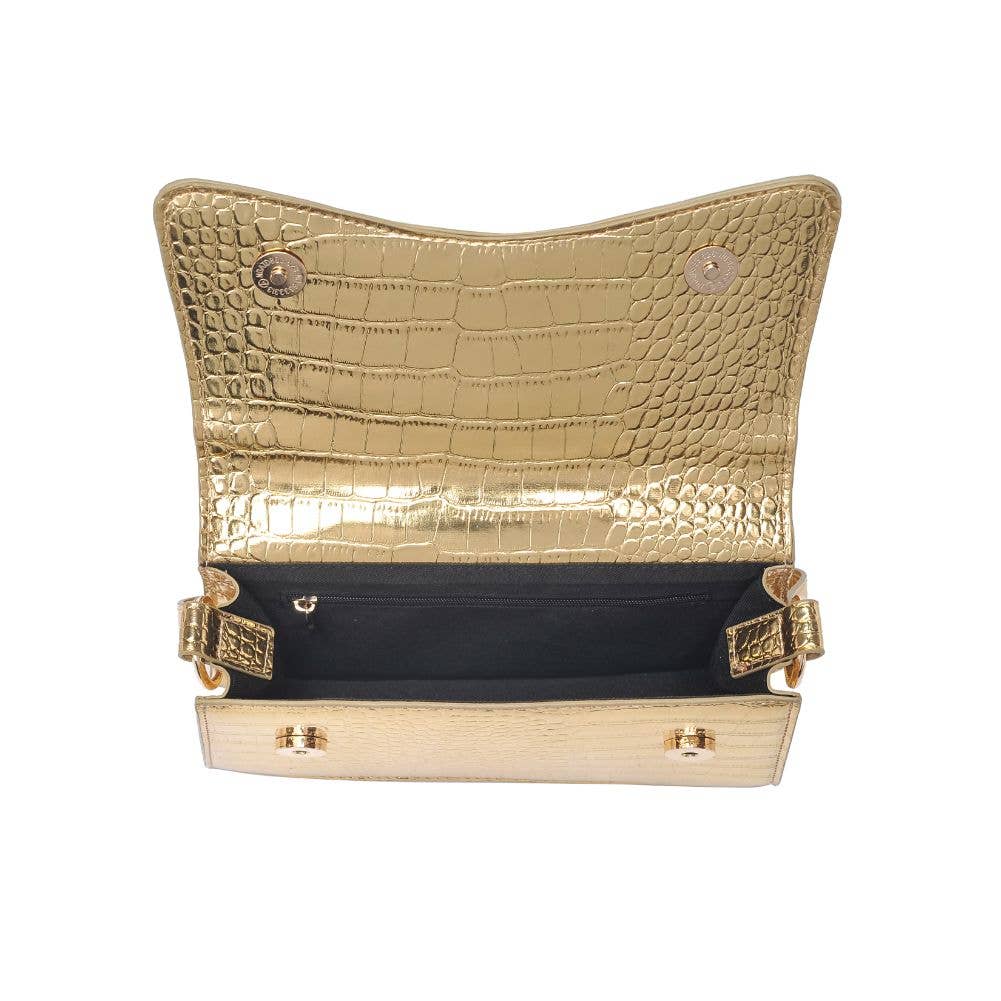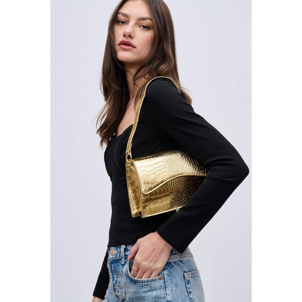 The 'Albright' boasts a luxurious crocodile-embossed texture, giving it a touch of opulence. Its structured rectangular silhouette combined with the sleek strap makes it versatile. Featuring a zip closure and external pocket, this piece marries style with functionality effortlessly.