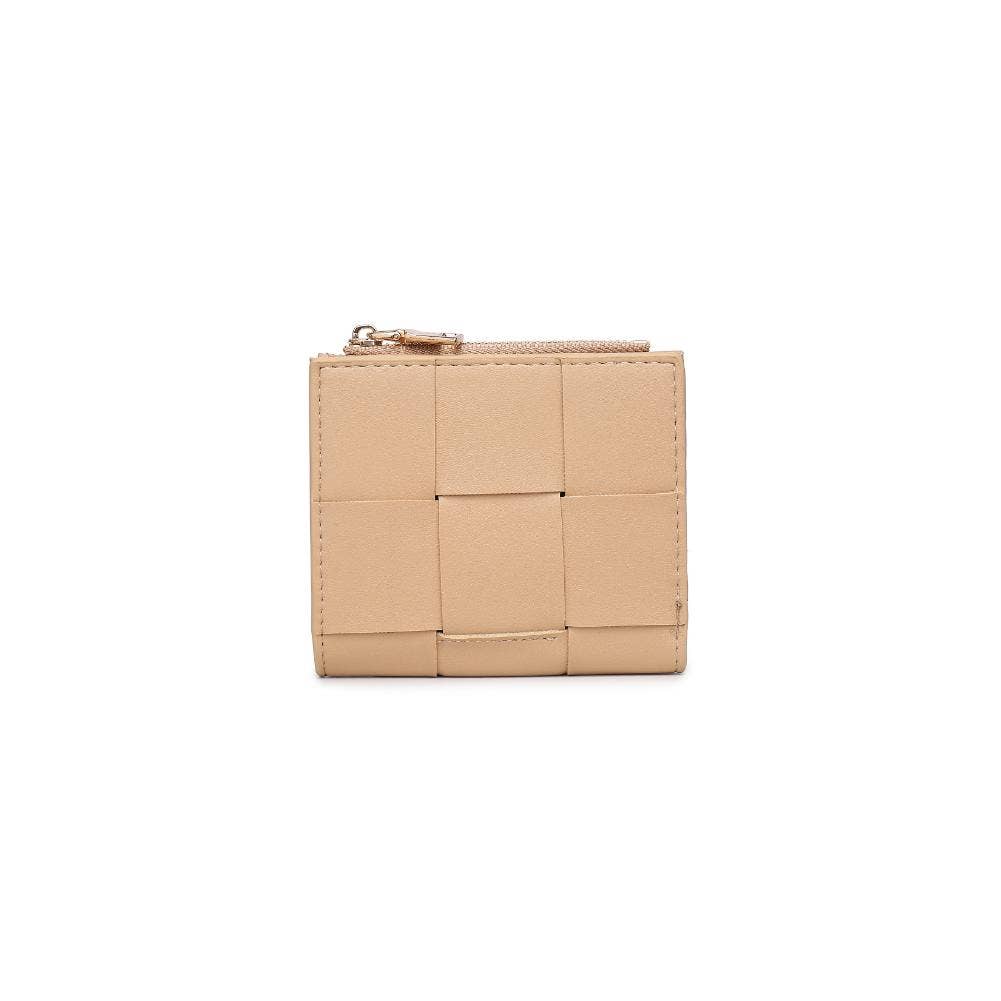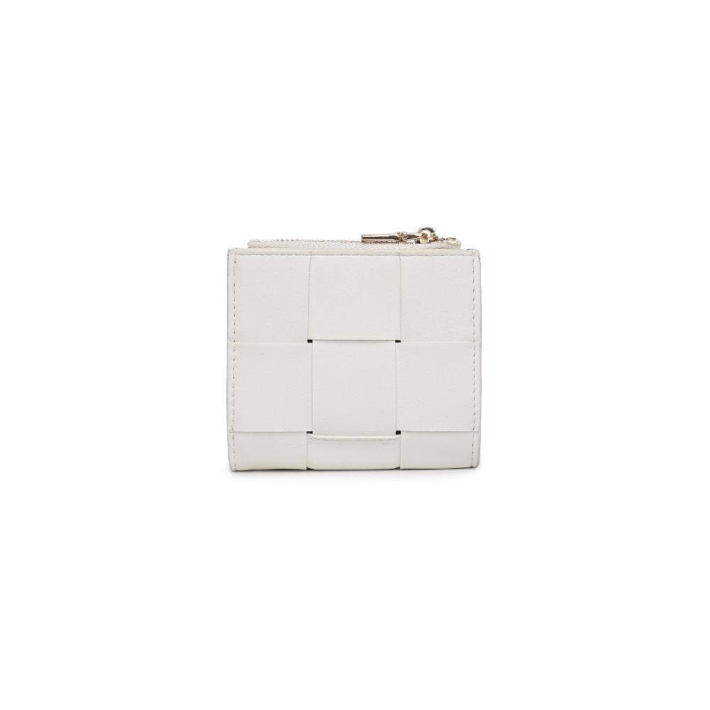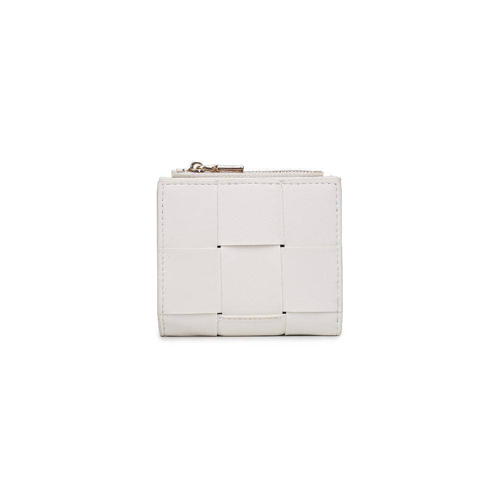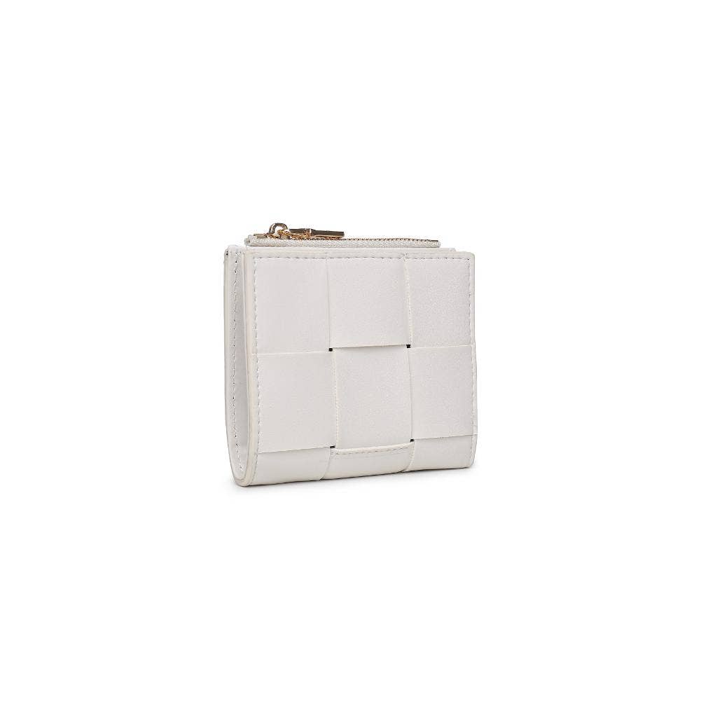 The woven design and gold hardware make a fashion statement, while the snap button closure ensures your belongings stay secure. Inside, find a thoughtfully organized space with a main compartment, coin zip pocket, and eight card slots for maximum functionality.