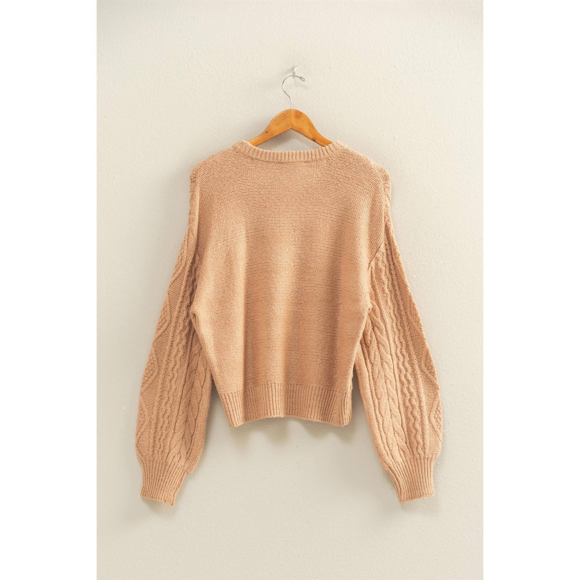 This cable knit sweater blends timeless style with comfort. Crafted with detailed patterns including braided ropes and lattice knit, it offers a cozy. A ribbed hem and cuffs enhance the snug feel. Ideal for casual autumn days, style this with high-waisted jeans or layer over a collared shirt for a preppy look. Finish with ankle boots and a statement watch to elevate your ensemble.