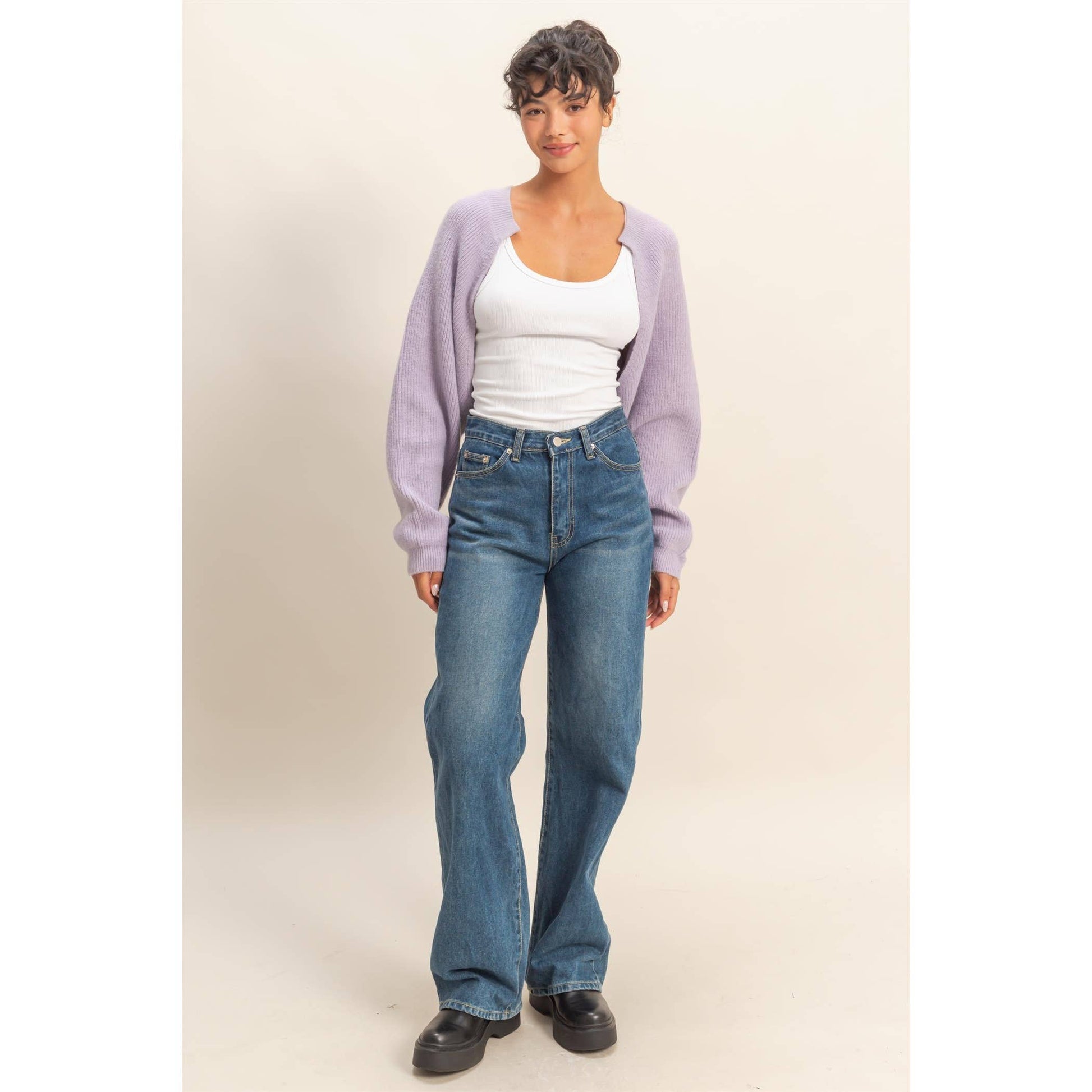 Embrace a relaxed silhouette with this cropped shrug cardigan sweater. The buttonless design and soft knit offer a seamless blend of comfort and style, making it perfect for layering. Ideal for a laid-back look or a casual outing, pair it with high-waisted denim or a midi skirt for effortless chic. Its versatility ensures it fits seamlessly into any wardrobe, adaptable for various occasions.