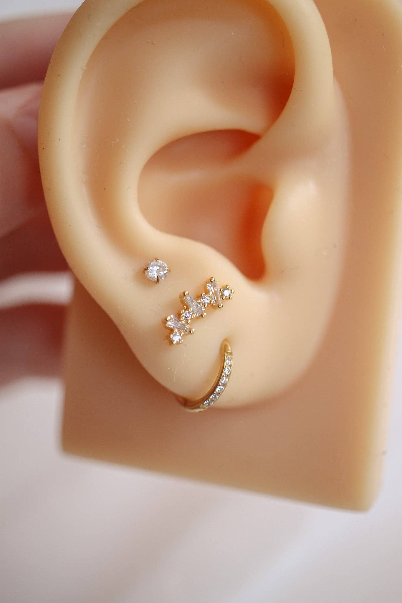 This stud is honestly the perfect addition to any ear stack! It's sleek and sophisticated design will add endless style to any look! Crafted from gold plated, hypoallergenic stainless steel, this stud is designed to be worn in any piercing without irritation. Because it is tarnish resistant, it can be worn for months on end, while its secure fit ensures it will stay in place in any environment - from the shower to the swimming pool! We also love that its a flat back design, meaning you can wear it to sleep without it poking the back of your head (side sleeper REJOICE)!