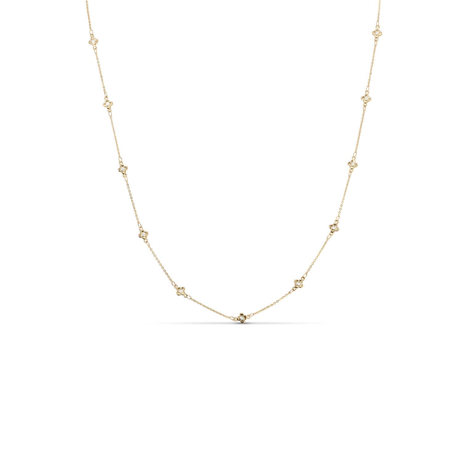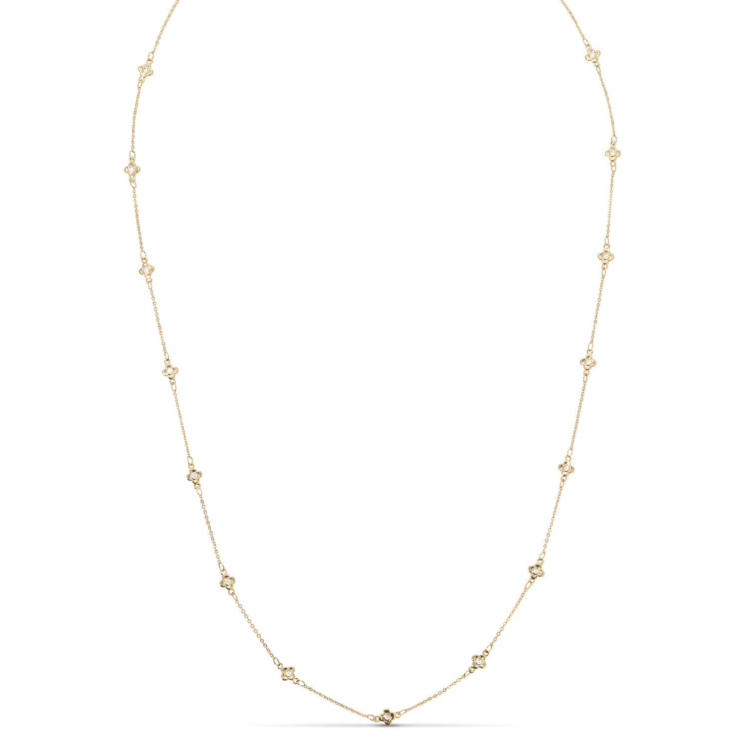 A dainty necklace adorned with multiple petite cubic zirconia accented quatrefoils.