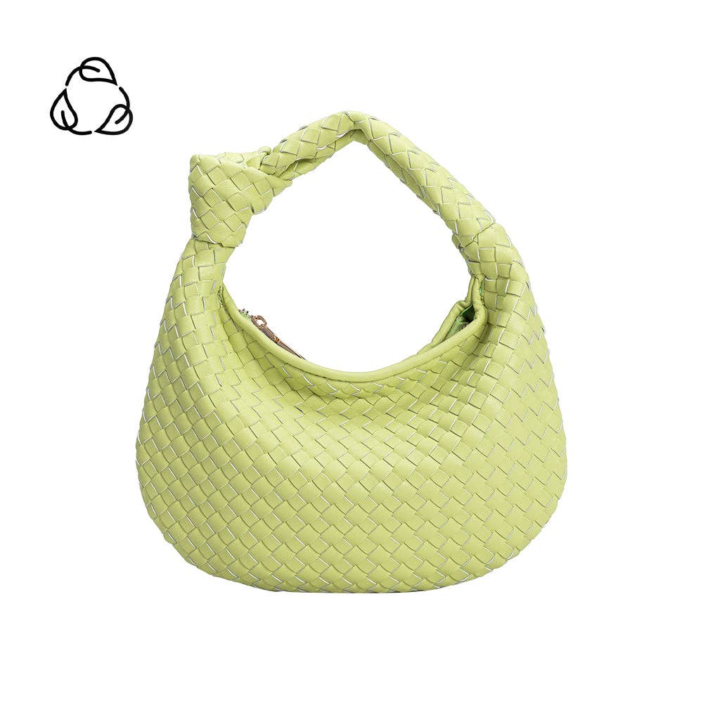 Designed for the fashion-forward, this stylish top handle bag combines style with sustainability. Crafted from recycled vegan leather, it features a convenient top handle for effortless carrying. With its compact size, it's perfect for carrying essentials on the on-the-go.
