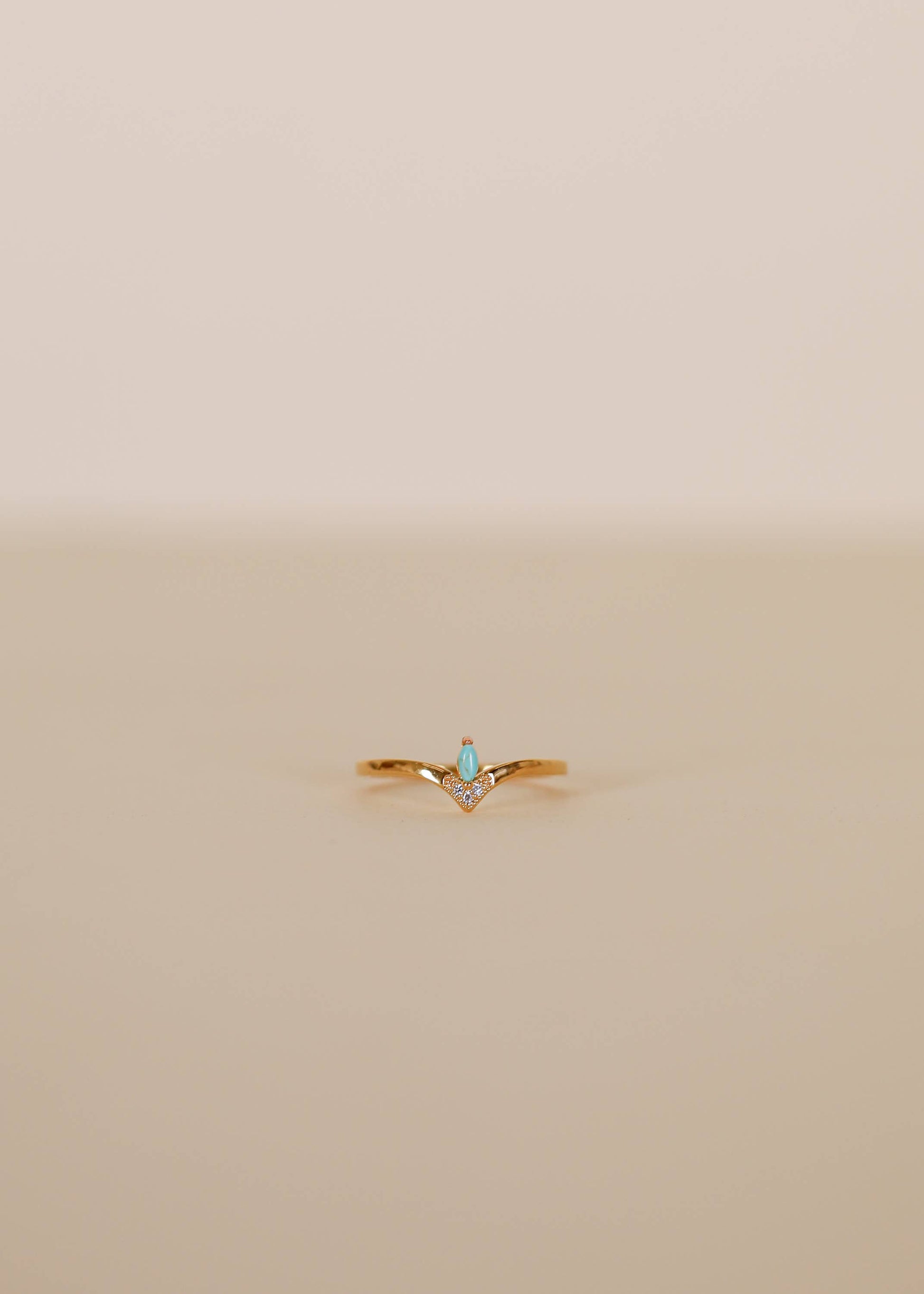 This heirloom-inspired ring features an 18kt gold band with a pave detail and Turquoise Stone set at its center.