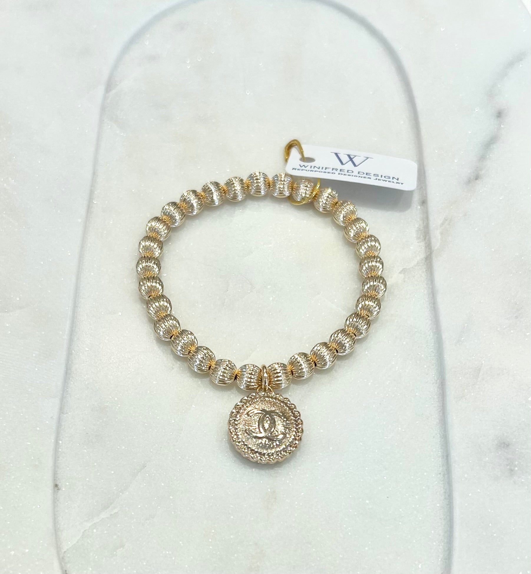 Golden Chanel Grooved Stretch Bracelet