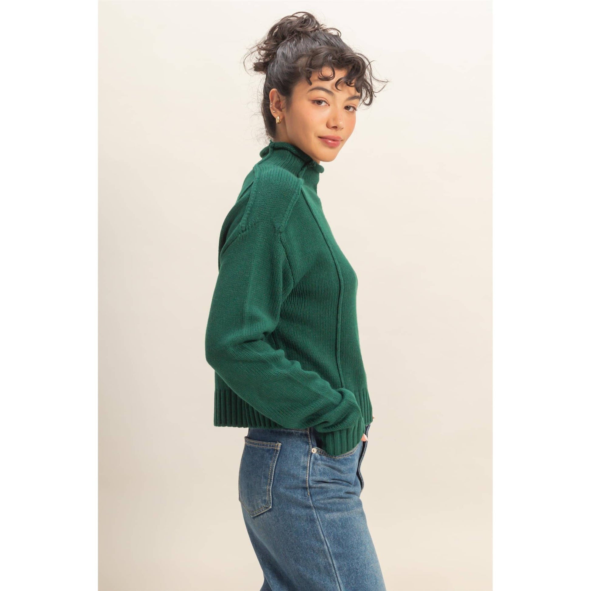 This sweater envelops you in warmth with its high roll neck and relaxed fit, providing a versatile and stylish layering option. Boasting a seam details design, it's perfect for chilly outings or a cozy evening indoors. Pair it with jeans and boots for a casual look, or throw it over a flared skirt for more flair. Its construction promises both comfort and a shot of style.