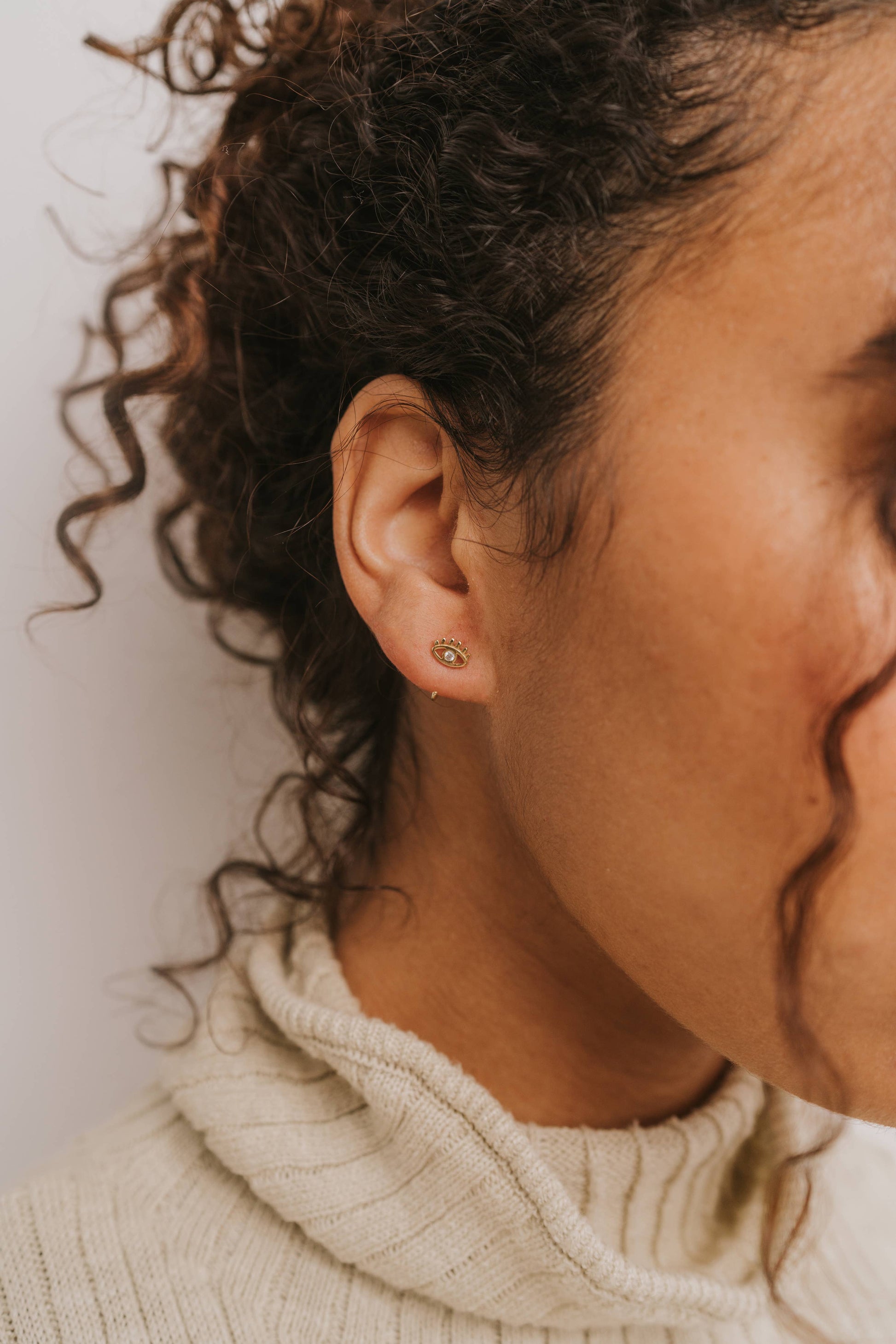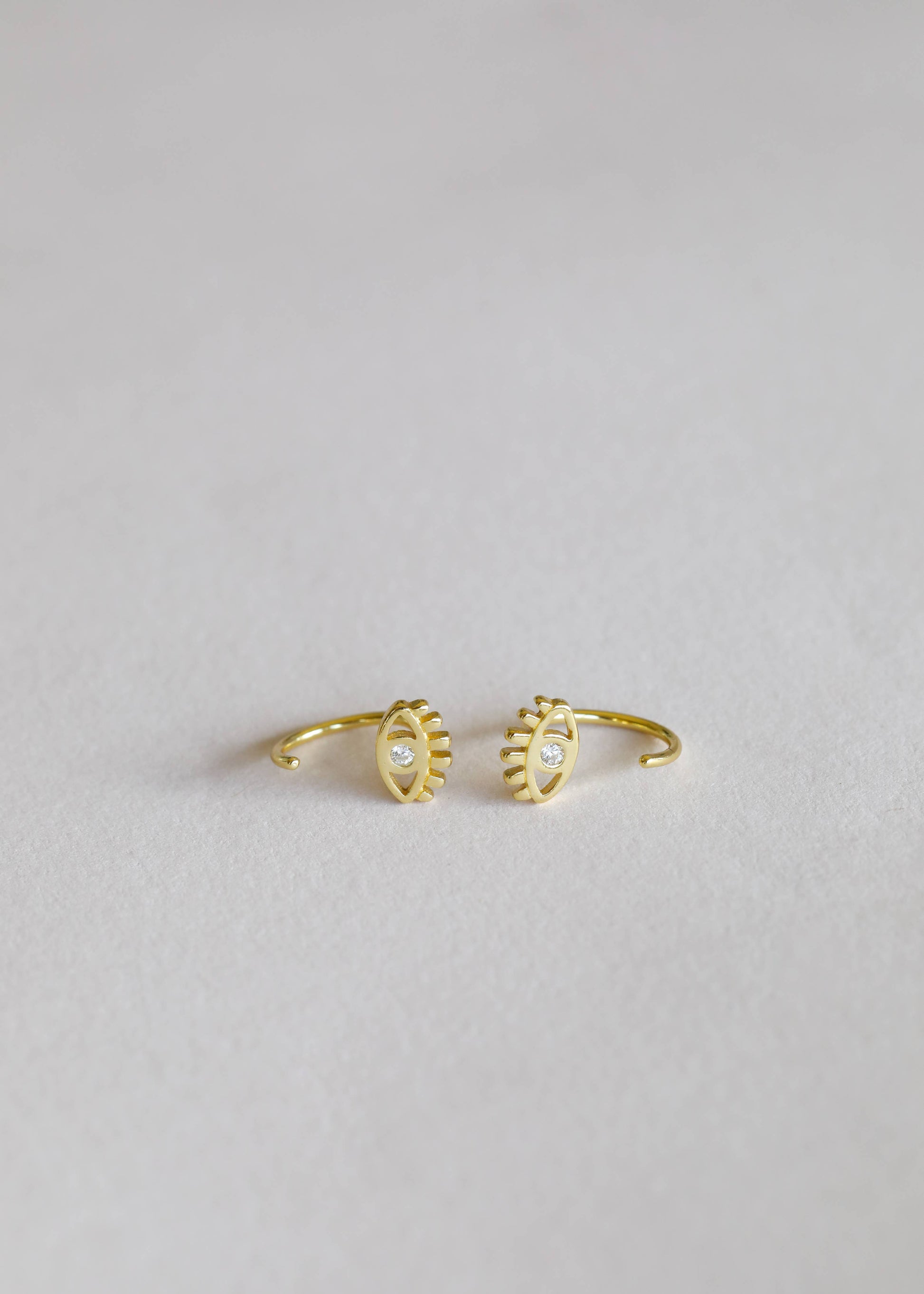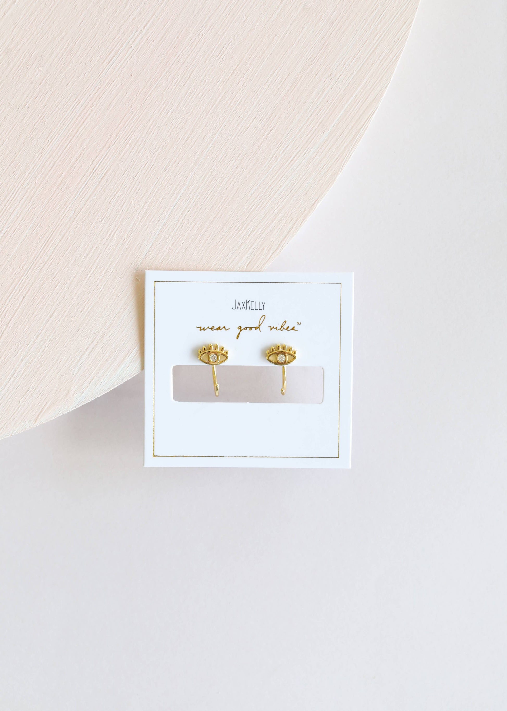 These Huggies feature a gold evil eye that hugs tight to your ear.