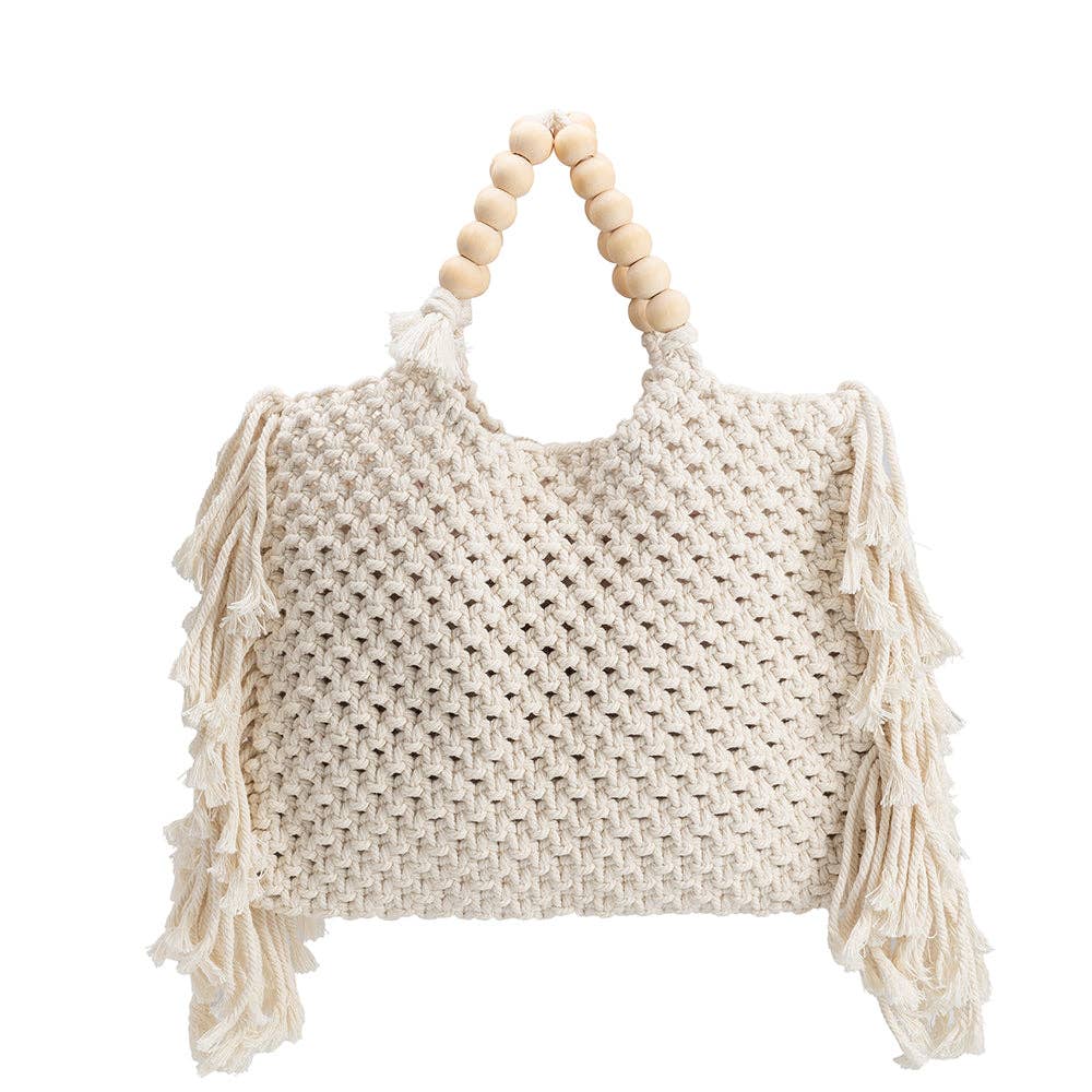Introducing Lilibeth, the perfect tote bag with both fashion and practicality. Designed with a hand knitted crochet look with fringe on the sides and wooden beads along the handle. This crochet bag is spacious enough to carry a standard size tablet and all your warm weather essentials.