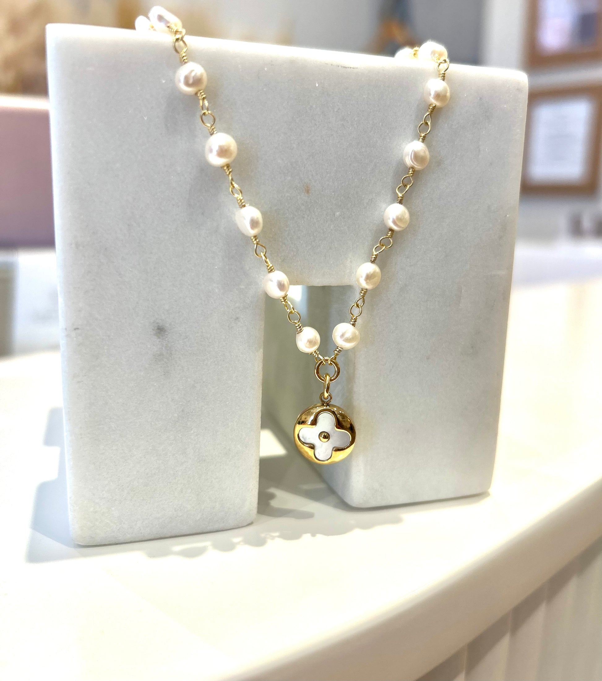 LV Flower Gold/Pearl Necklace