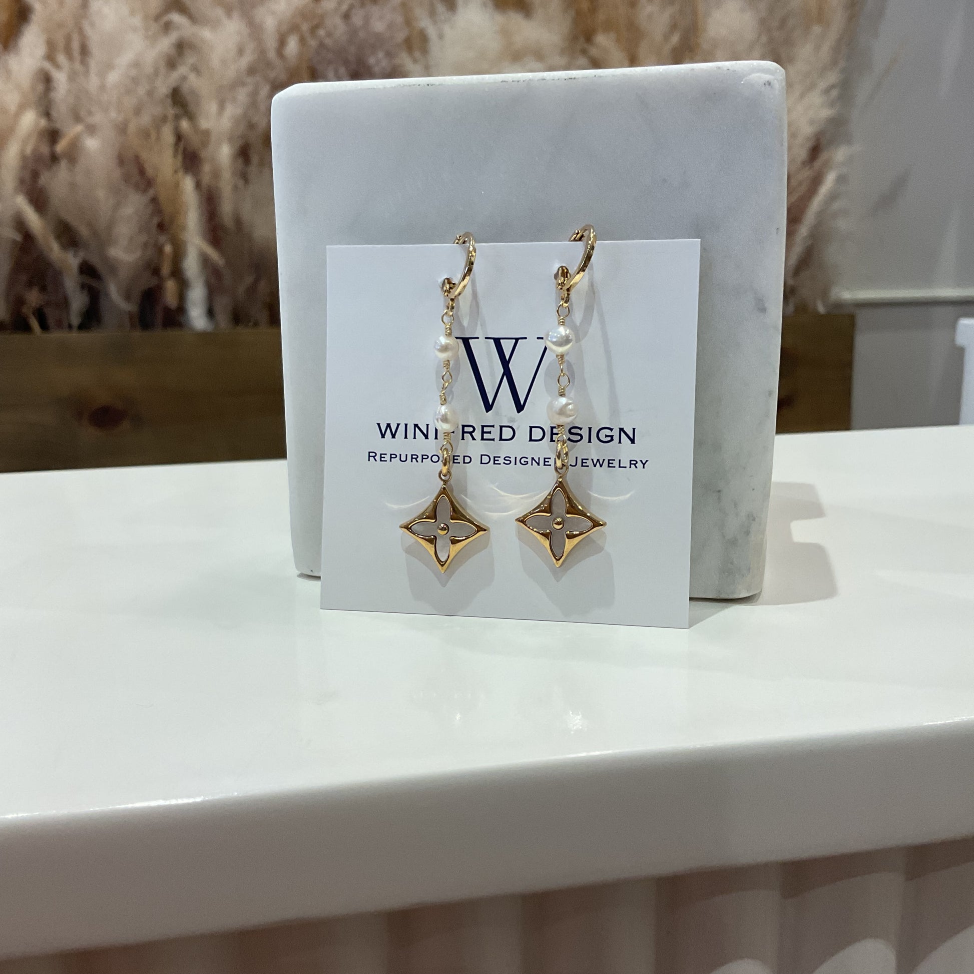 LV Triangle Clover Dangle Huggies w/ Pearl Drop