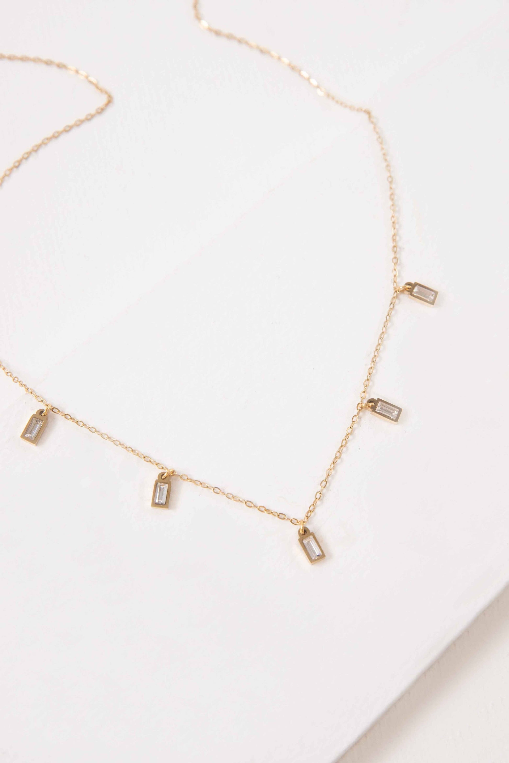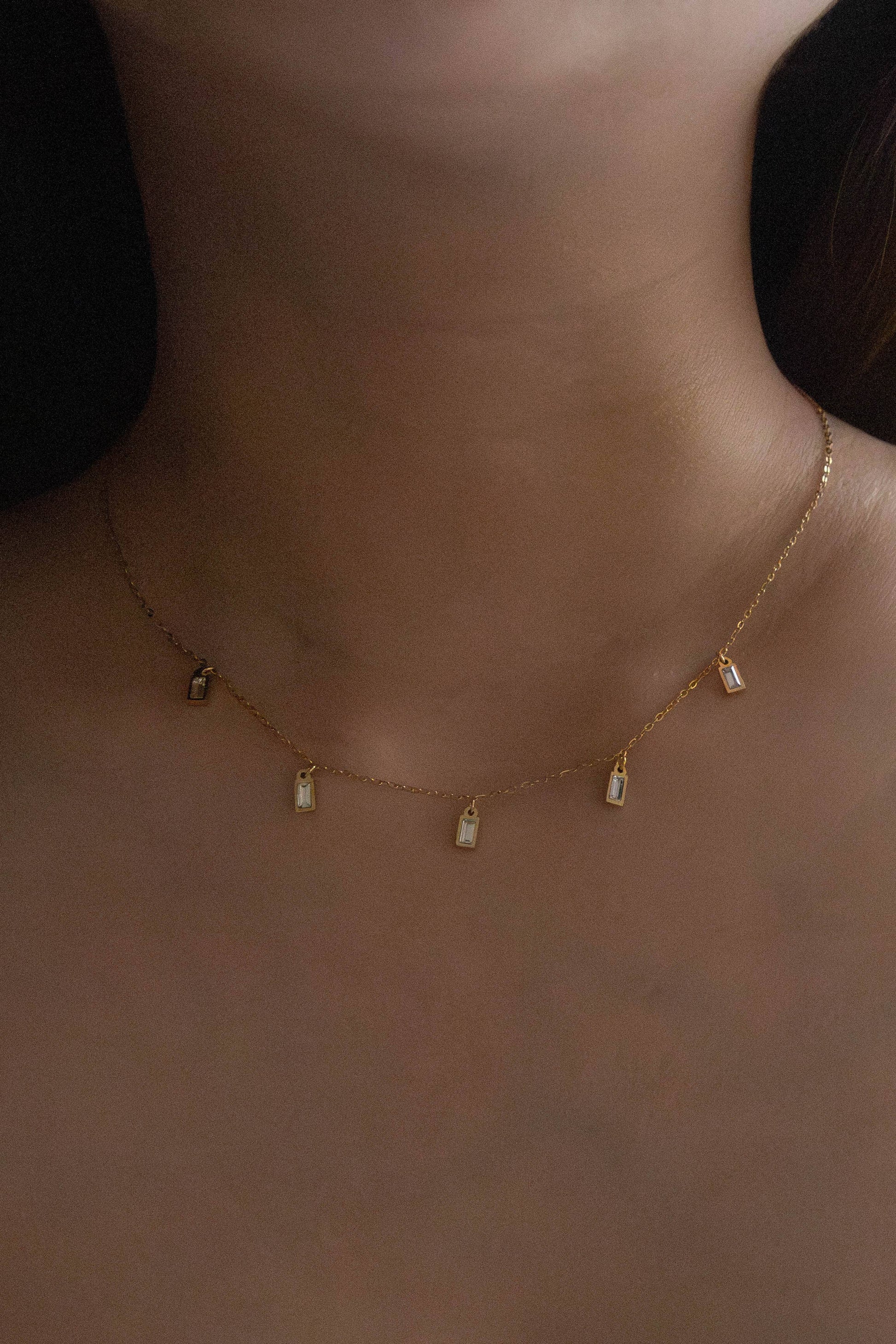 A delicate necklace in gold with dainty rectangular rhinestones!