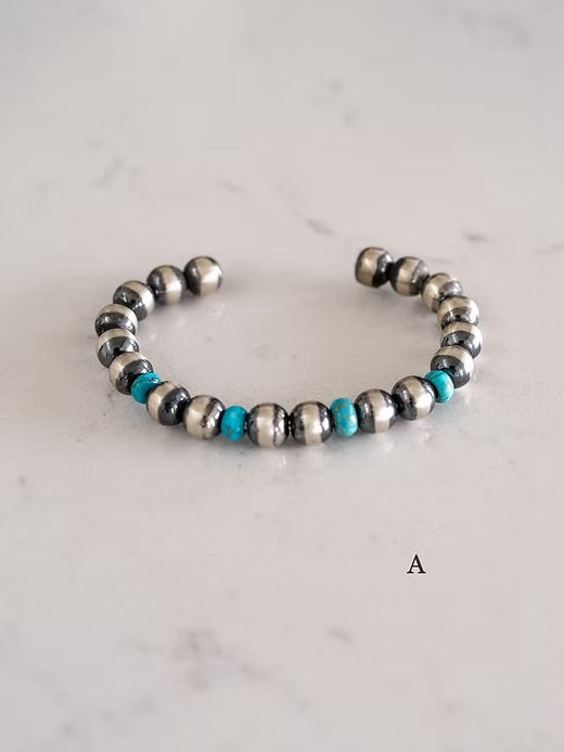 Layer or stand alone. This Navajo Pearl Cuff bracelet will add some pop to your arm candy.