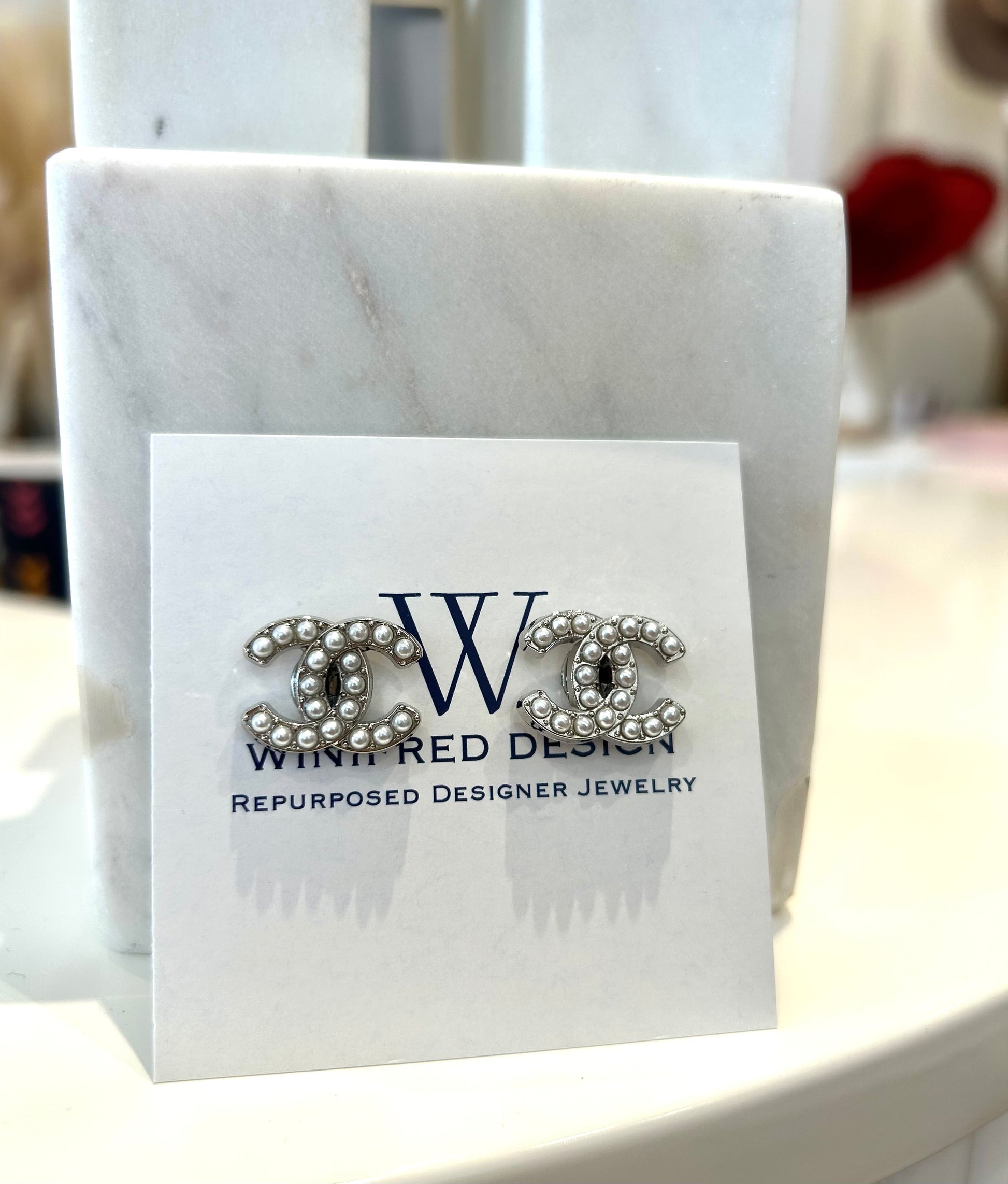 Pearl / Silver Chanel Earrings