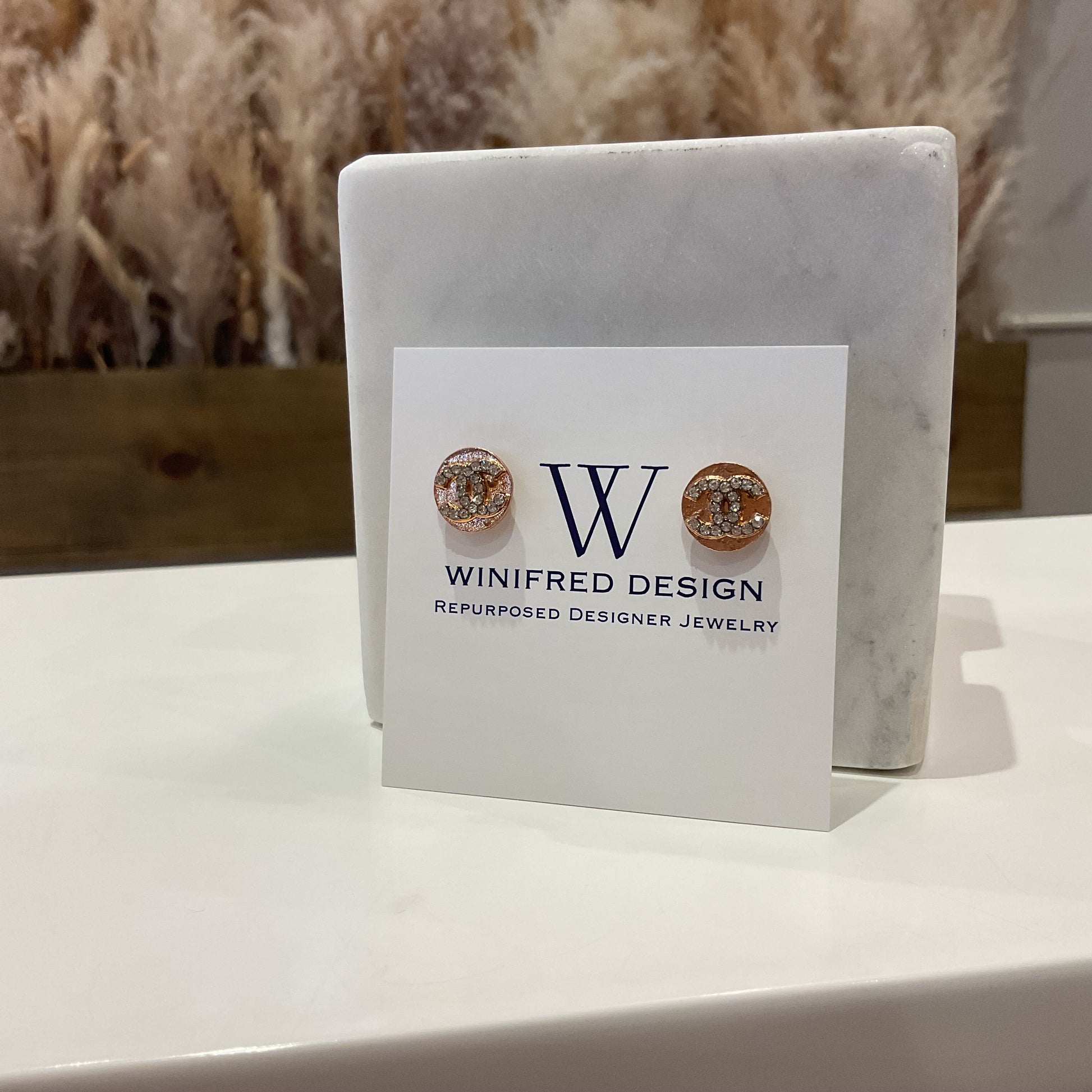Rose Gold CC Rhinestone Stud Earrings