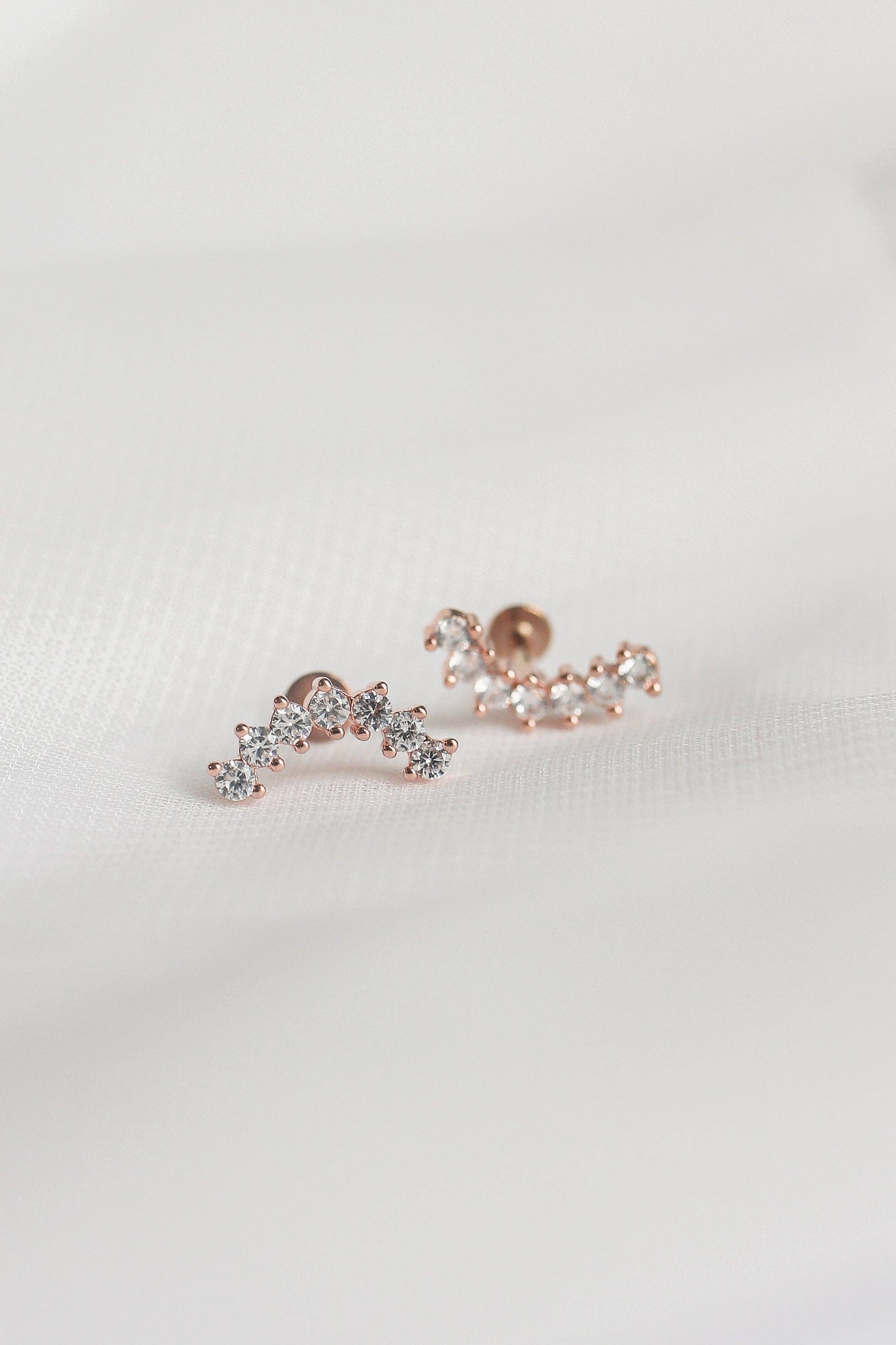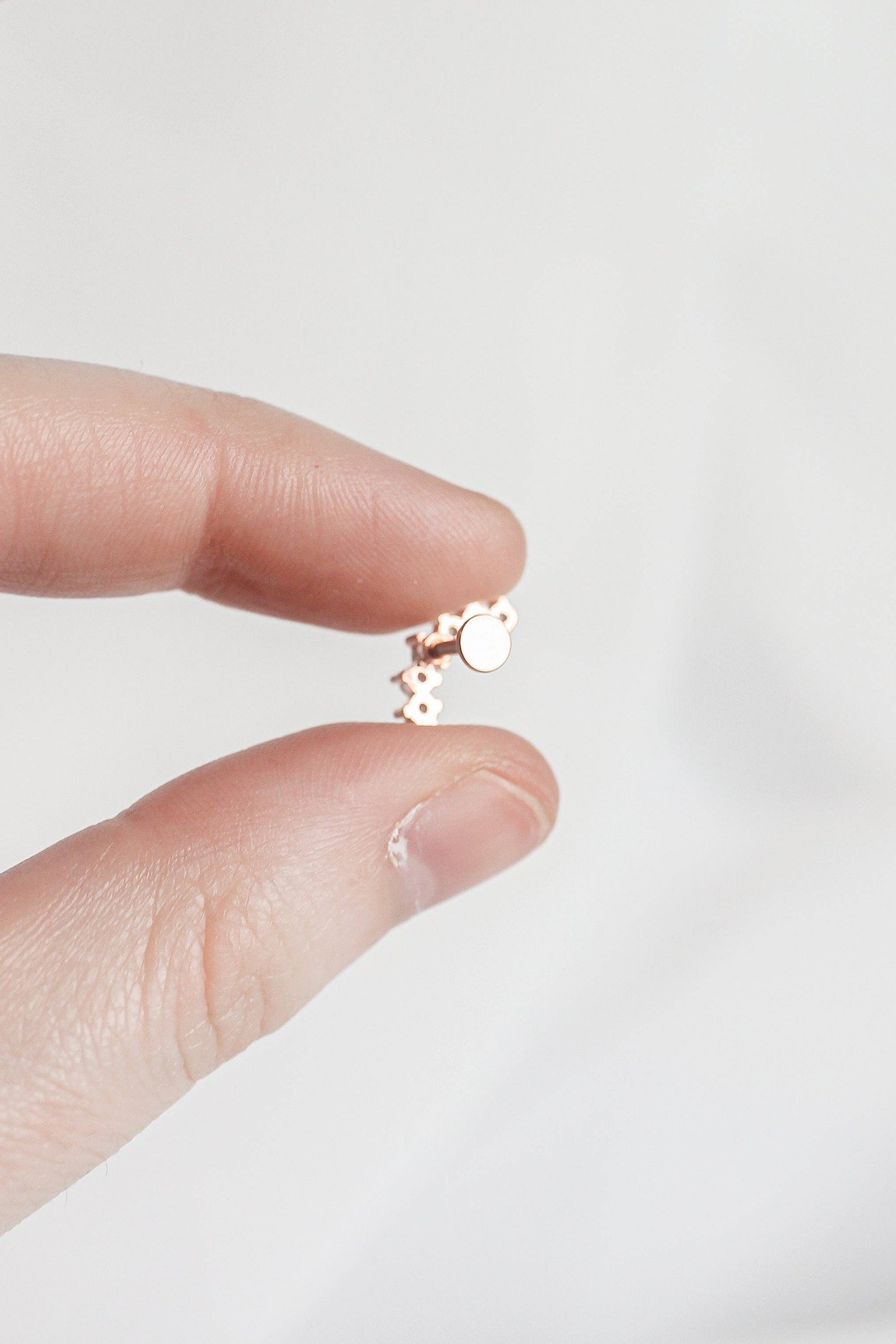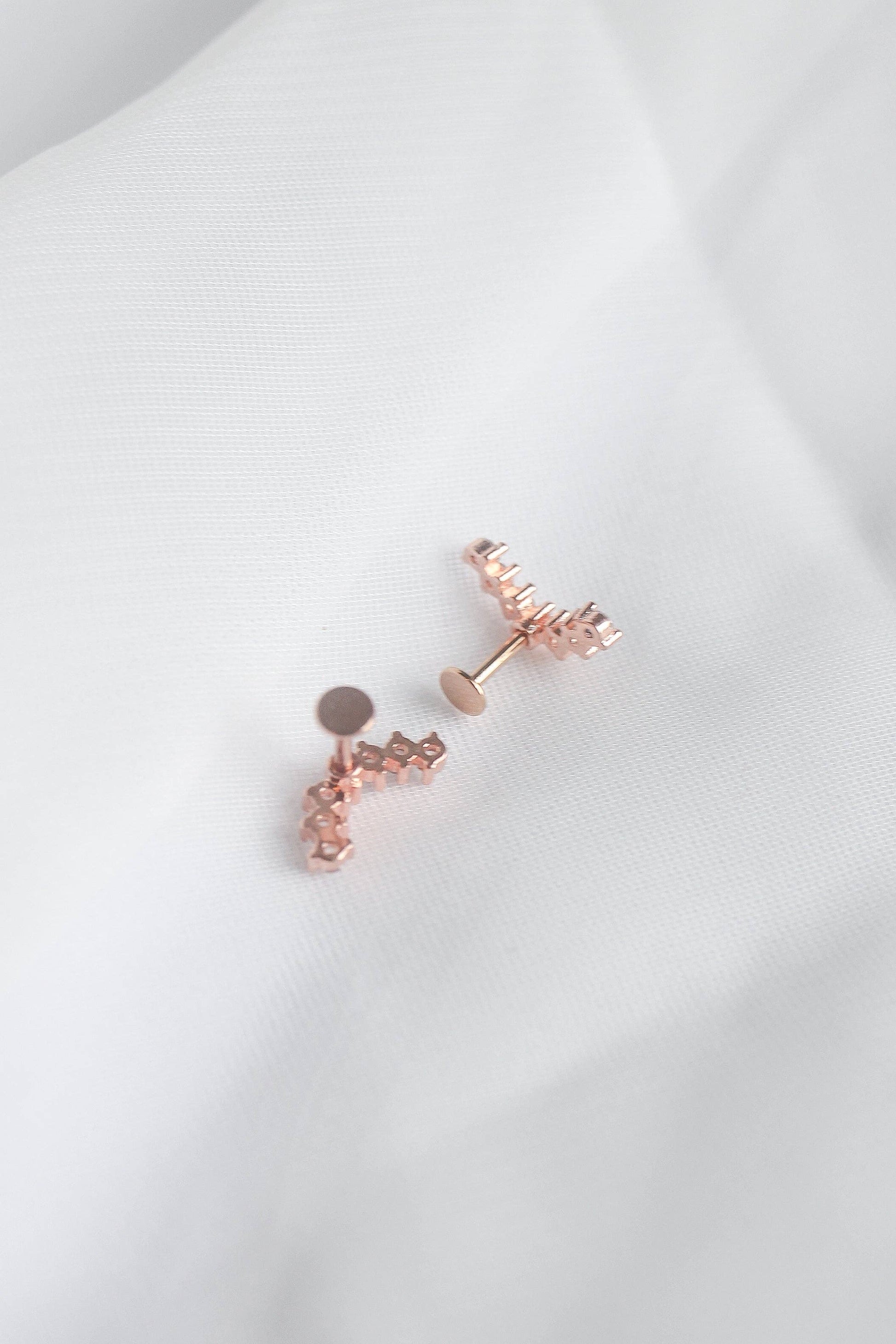 This stylish Roxanne flat back stud adds a feminine flair to your look! Crafted from rose gold plated stainless steel, it's safe to wear for months and is tarnish resistant and hypoallergenic. Perfect for your new piercings or for those with sensitive skin.