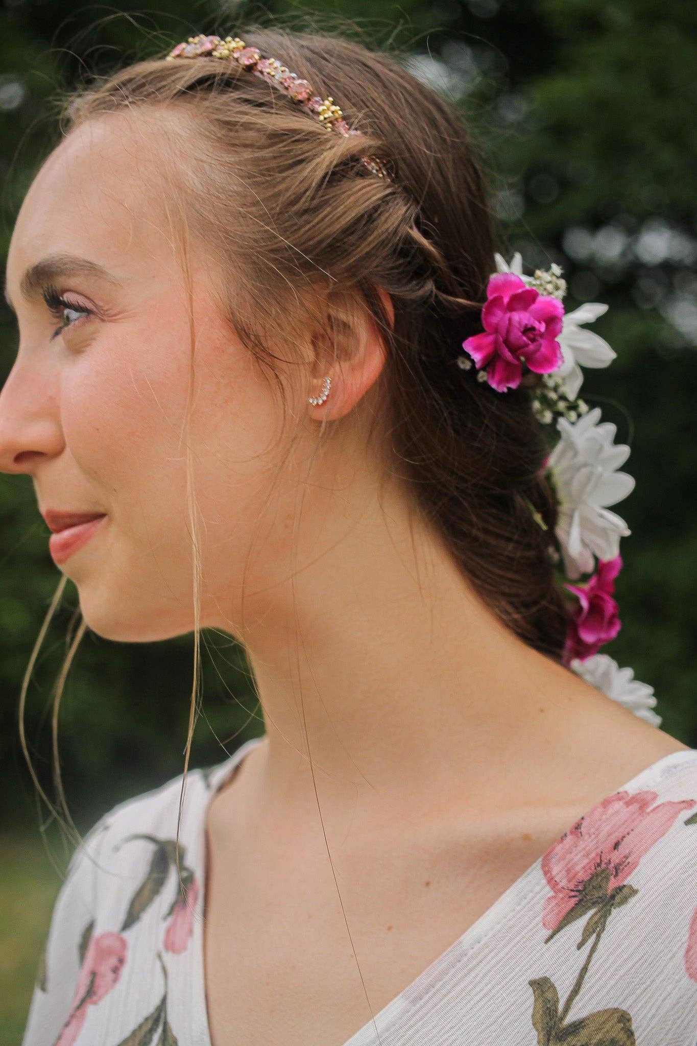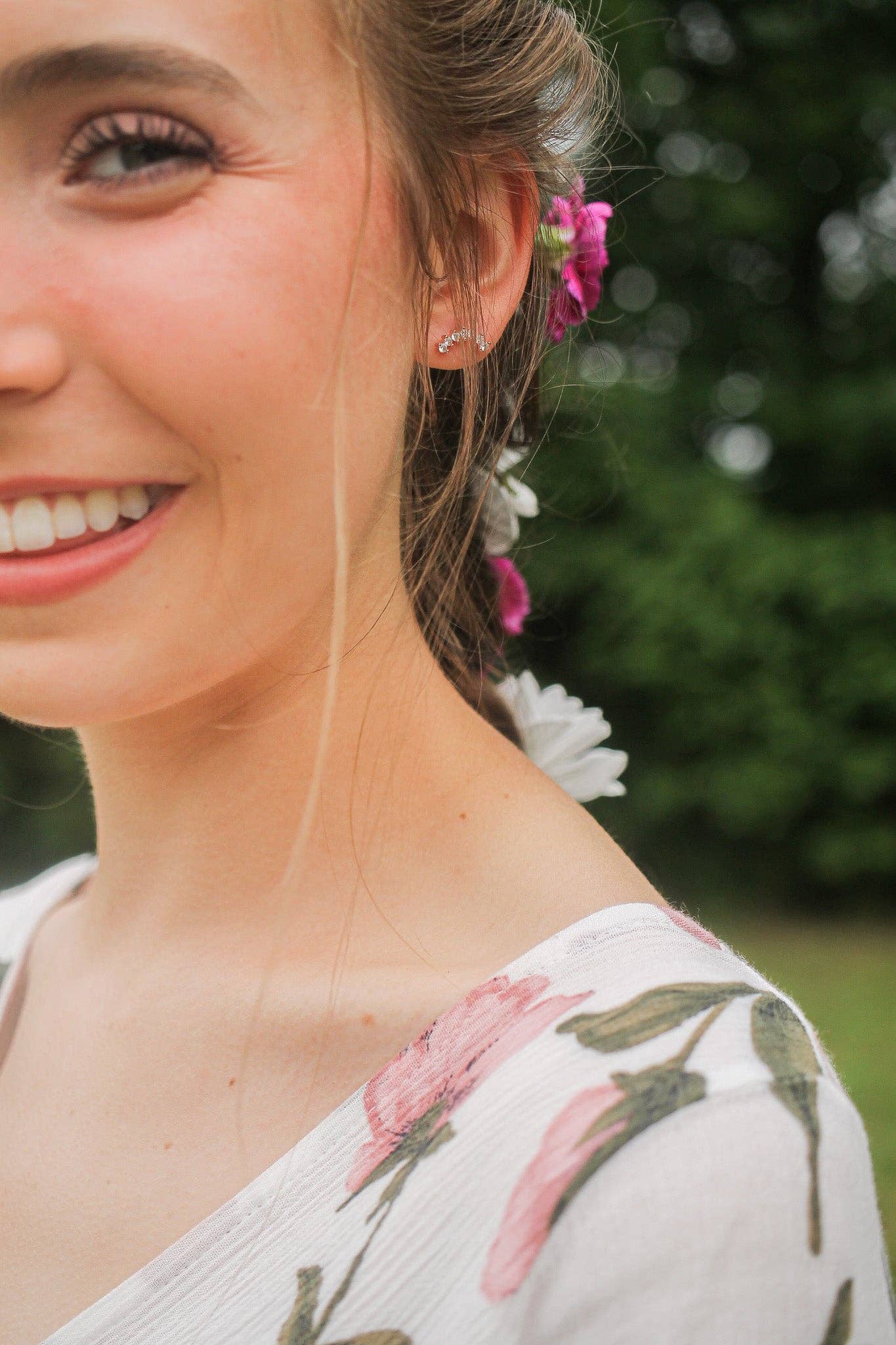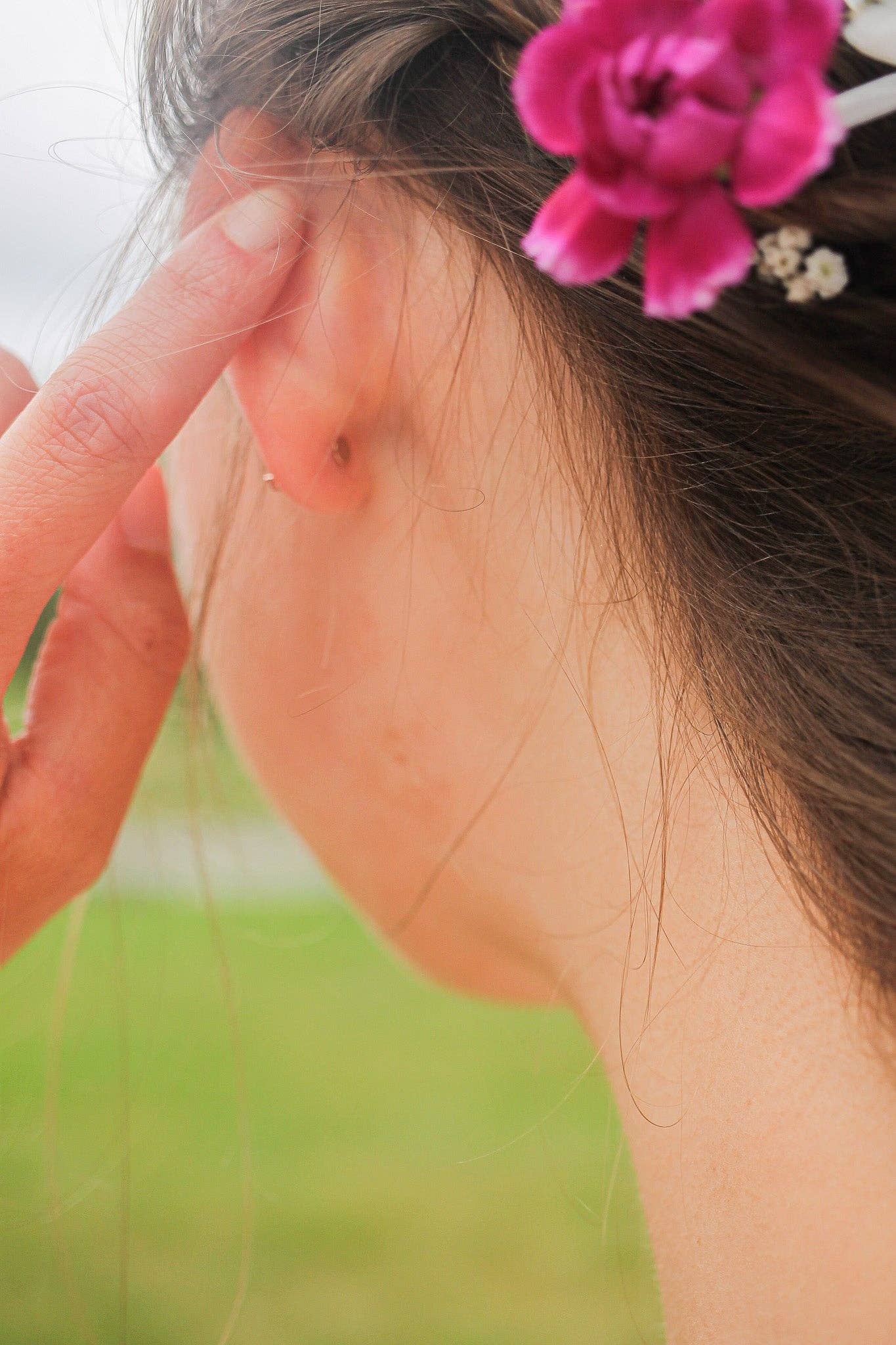This stylish Roxanne flat back stud adds a feminine flair to your look! Crafted from rose gold plated stainless steel, it's safe to wear for months and is tarnish resistant and hypoallergenic. Perfect for your new piercings or for those with sensitive skin.