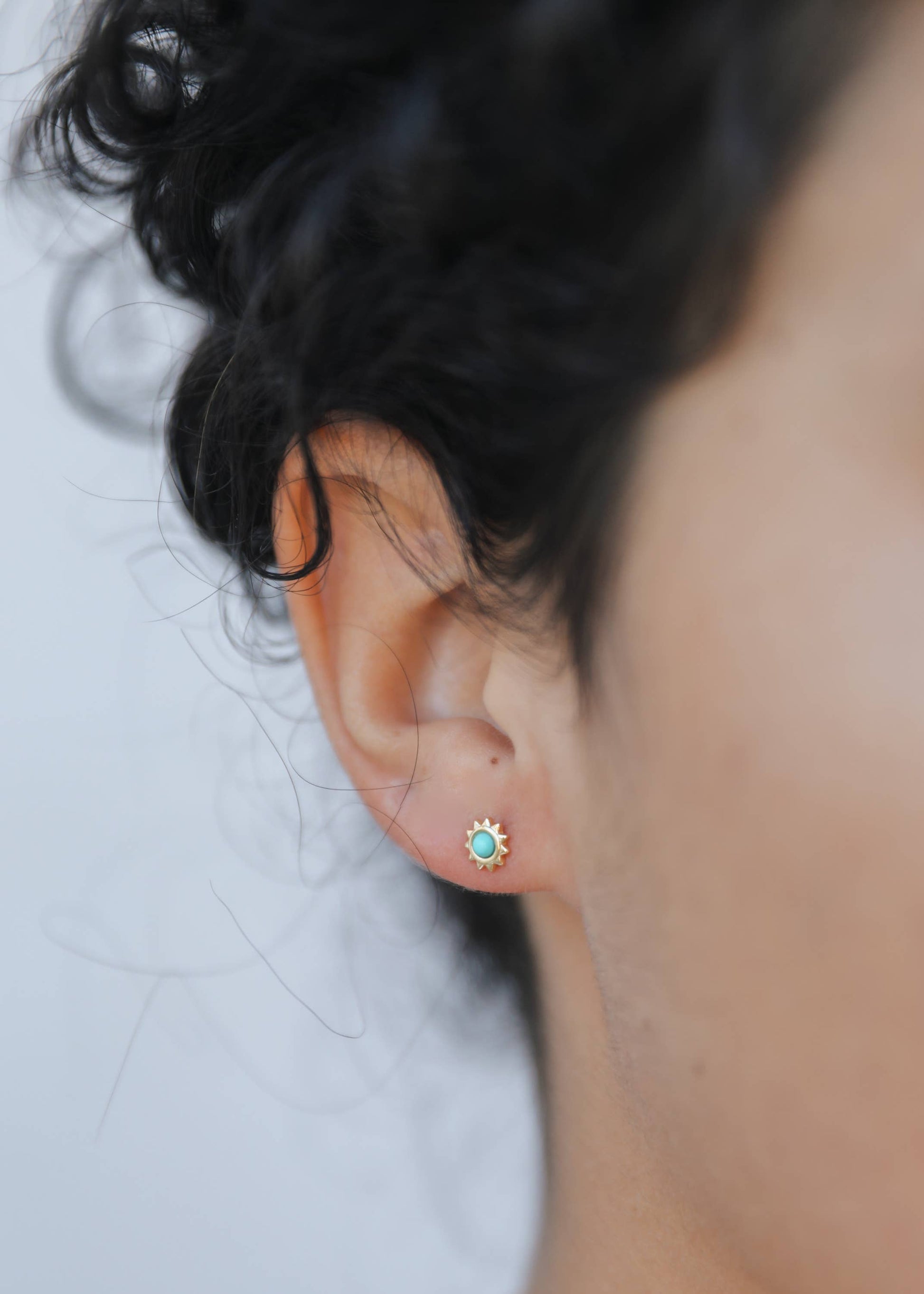 Turquoise Stone - Thoughtfully crafted Sterling Silver Posts – 18K gold plating over brass Hypoallergenic – Lead Free Tarnish Free - Long lasting protective coating safeguarding your jewelry from sweat, water, and more.