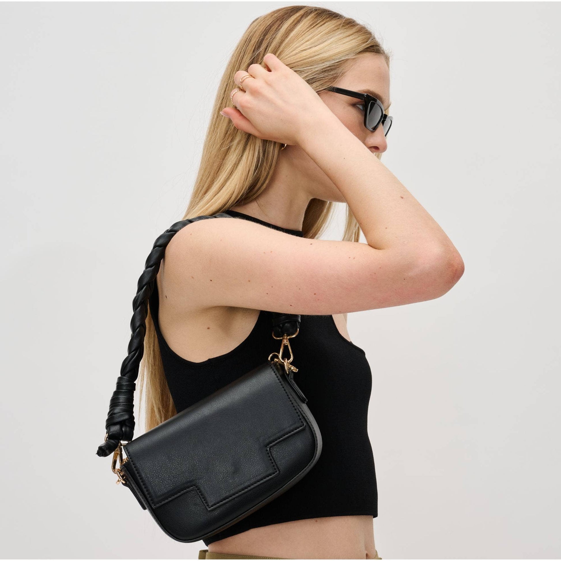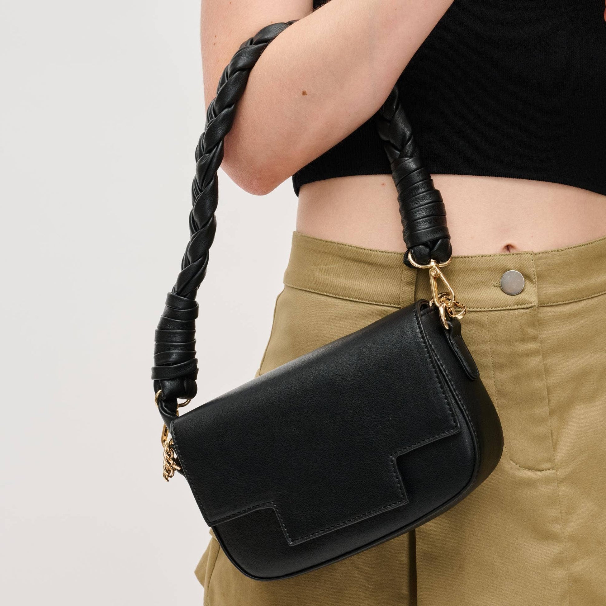 Meet your new favorite accessory, the Magnetic Snap Vegan Leather Crossbody. Crafted from smooth vegan leather with a chic braided handle and gold hardware, it's a style statement. Unleash practicality with the detachable chain strap and a thoughtfully designed fabric-lined interior boasting a handy zip pocket.