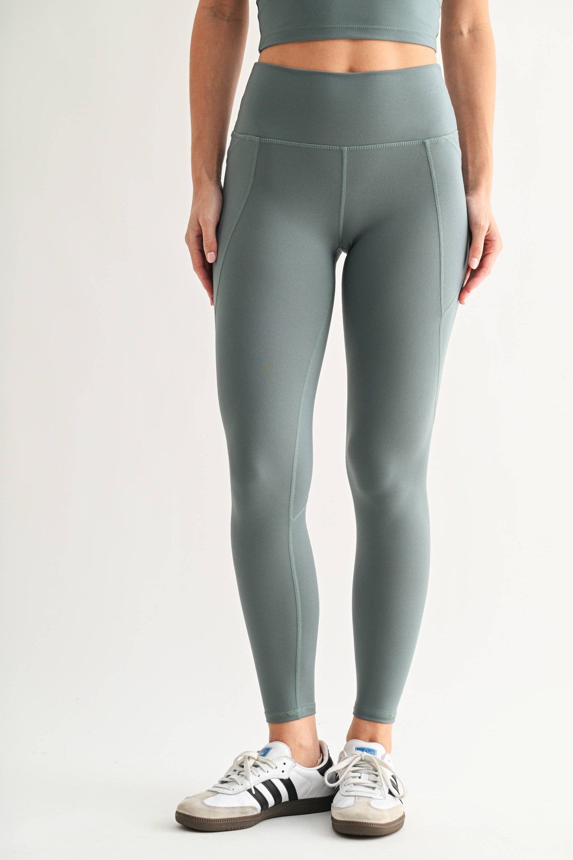 Feel confident and look incredible in the Venice Cloud Light Sculpt High-Waisted Leggings—your new go-to for everything from sunrise yoga to afternoon adventures. Designed with a flattering 25" inseam that hits just above the ankle, these leggings feature buttery soft, lightweight, and breathable fabric that molds beautifully to your curves for a flawless silhouette. The high-waisted design provides gentle support and a smooth, sculpted look that keeps you feeling amazing whether you're flowing through Pilates, powering through a workout class, or simply living your best life. Practical pockets mean you can keep your essentials close without the fuss, while the premium fabric moves with you through every stretch, lunge, and leap. Layer them with your favorite Venice sports bra or tank to create an activewear look that's as stylish as it is functional. Because great leggings should make you feel like the best version of yourself—every single time you put them on.